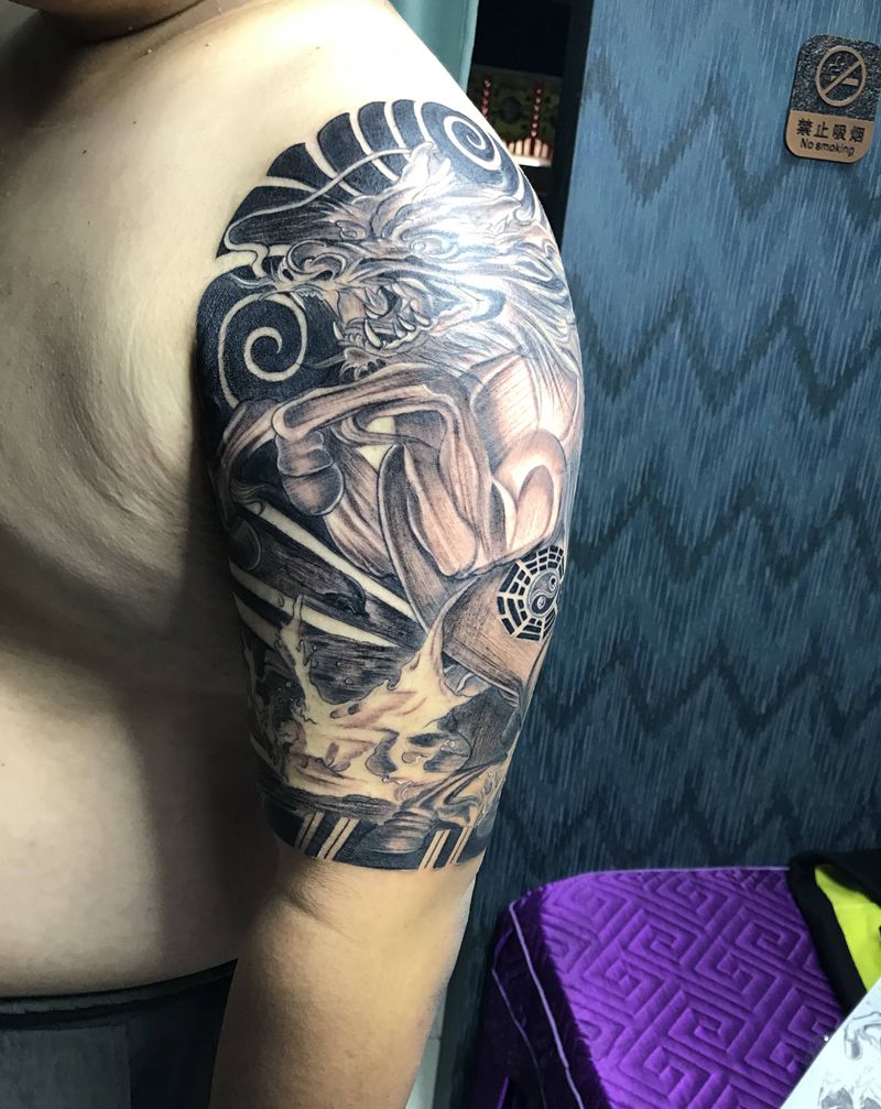 当前位置: 首页 >山东省烟台市纹身店-鼎力刺青专业纹身会所纹身图案>DL 大臂龙马纹身图片_手臂老传统纹身图案