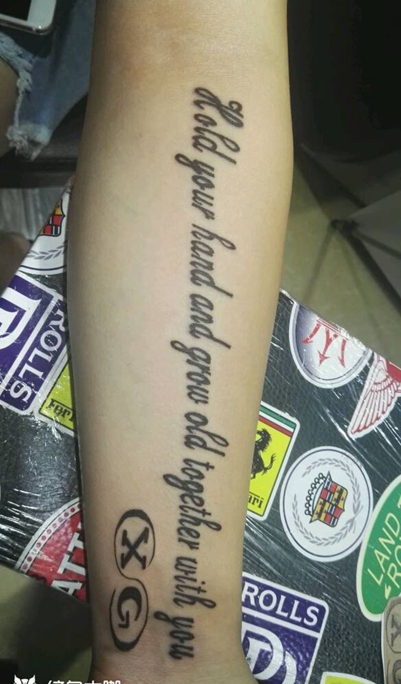 当前位置: 首页 >山东省东营市纹身店-铭源刺青·纹绣 TATTOO纹身图案>执子之手与子偕老纹身图片_手臂欧美传统字符成品纹身图案