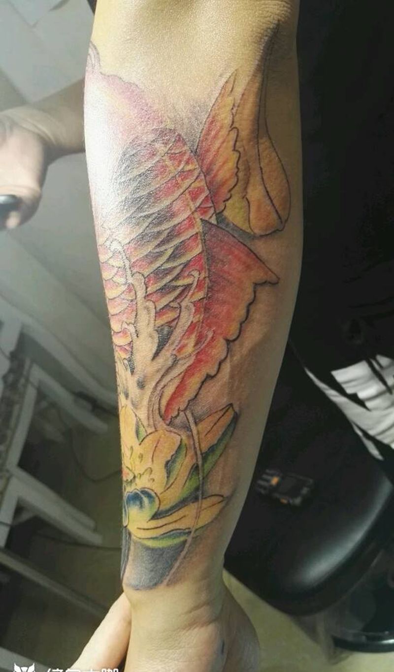 当前位置: 首页 >山东省东营市纹身店-铭源刺青·纹绣 TATTOO纹身图案>小臂鲤鱼纹身图片_手臂传统动物成品纹身图案