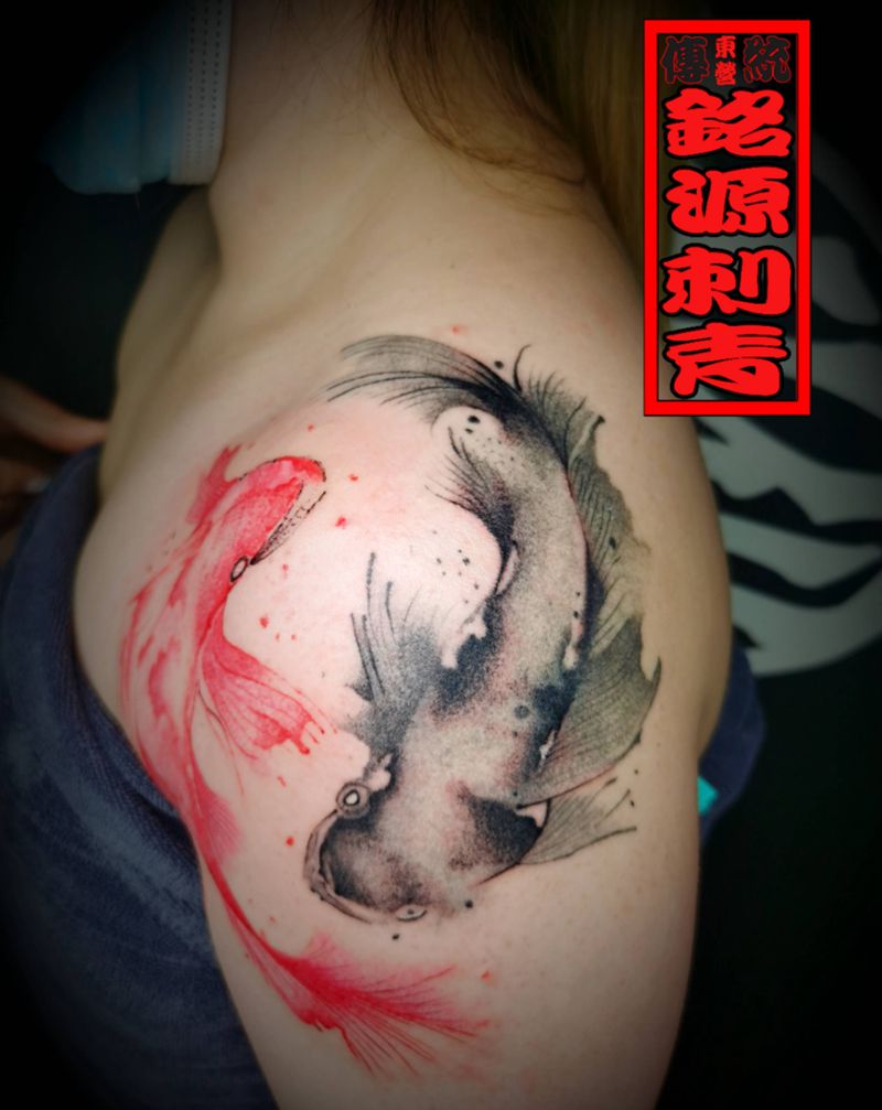 双鱼纹身图片_肩部水彩水墨纹身图案