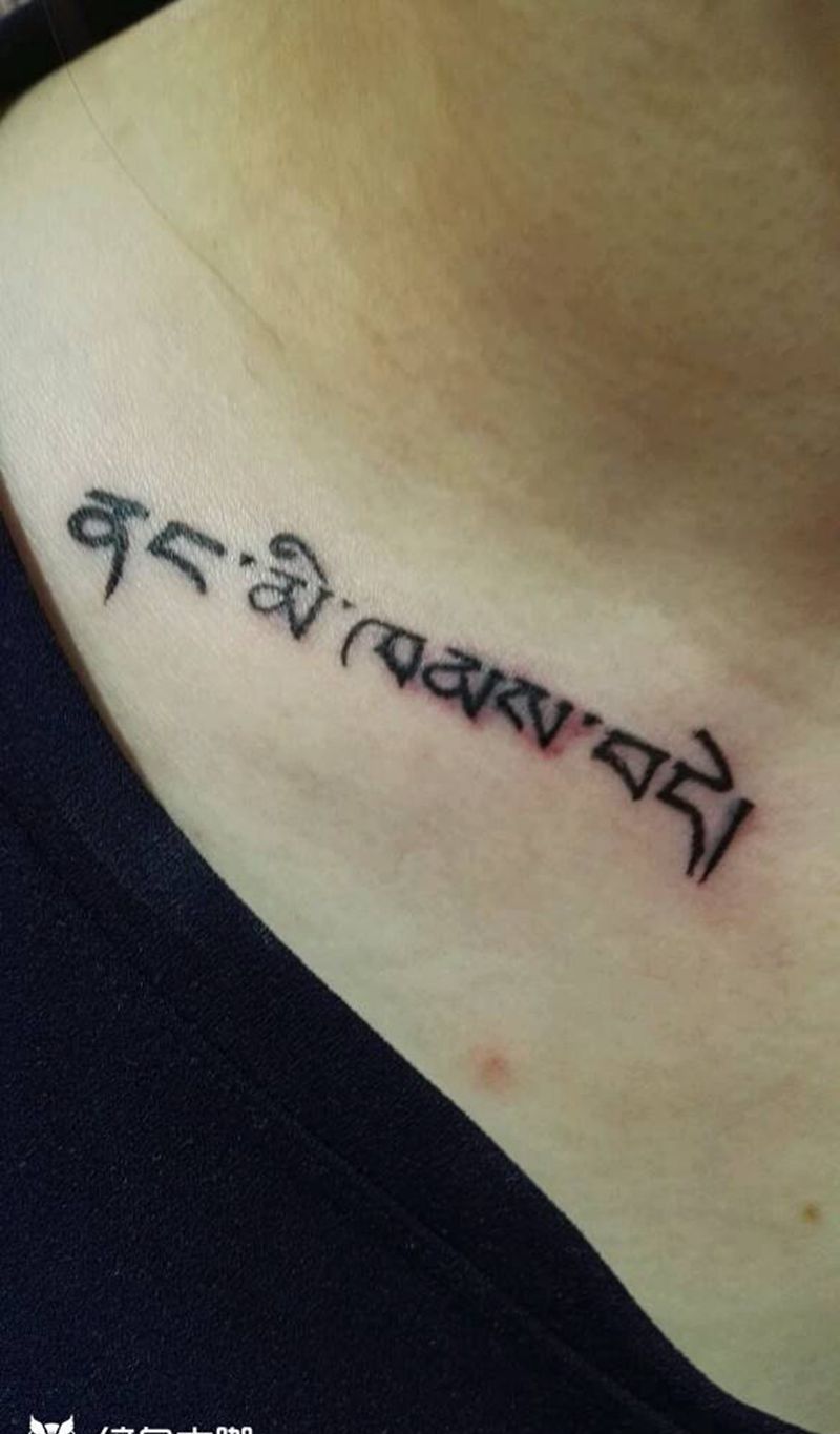当前位置: 首页 >山东省东营市纹身店-铭源刺青·纹绣 TATTOO纹身图案>锁骨梵文:家人幸福纹身图片_颈部传统字符成品纹身图案