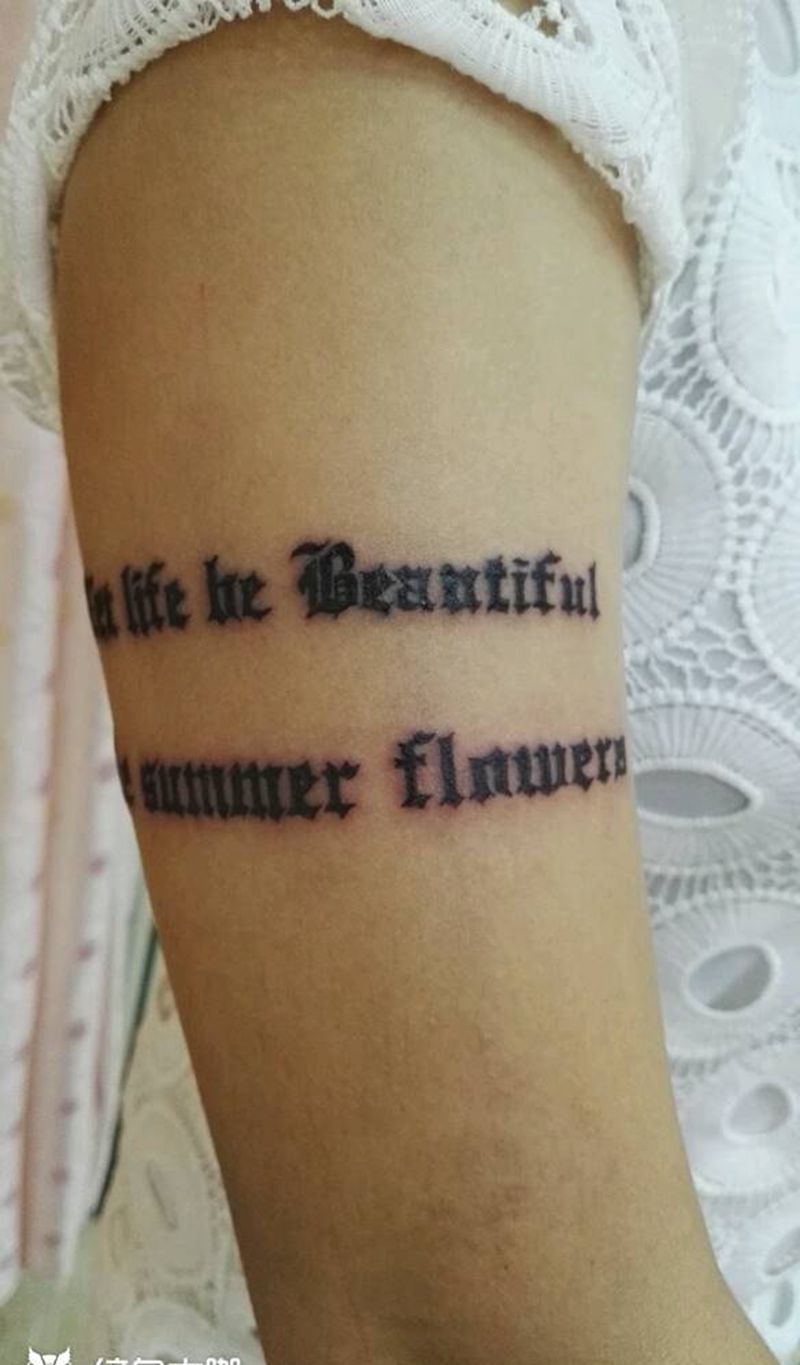 当前位置: 首页 >山东省东营市纹身店-铭源刺青·纹绣 TATTOO纹身图案>生如夏花纹身图片_手臂欧美字符成品纹身图案