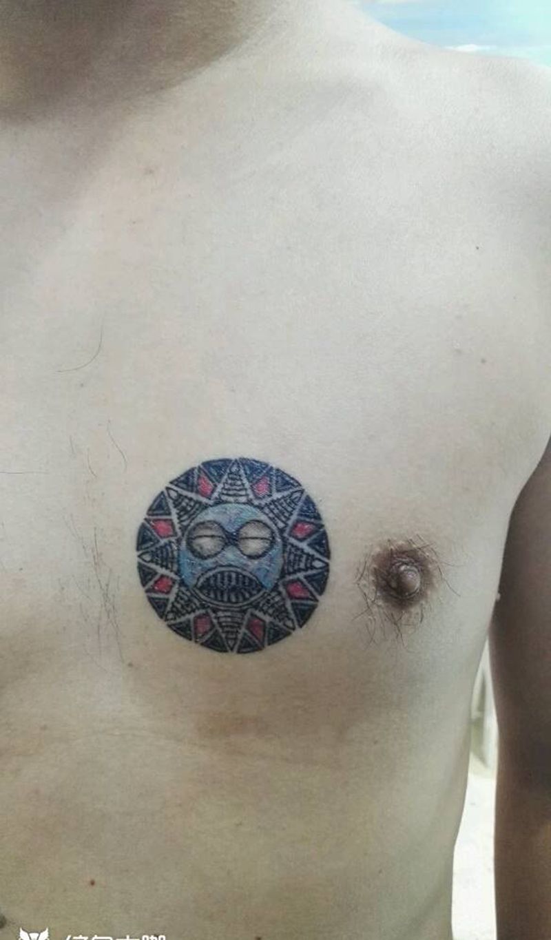 前胸彩色玛雅图腾纹身图片_胸部欧美图腾成品纹身图案