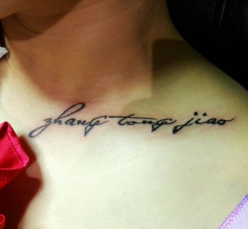 锁骨英文纹身图片_颈部欧美写实字符原创成品纹身图案