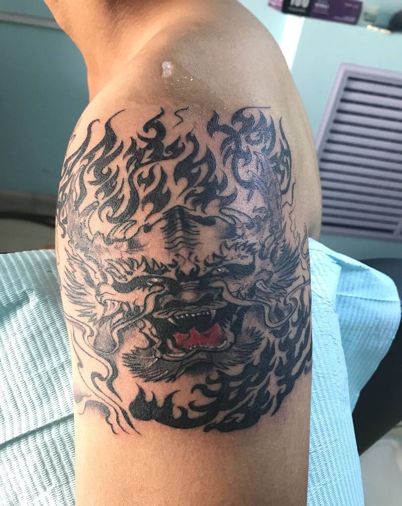 当前位置: 首页 >山东省东营市纹身店-铭源刺青·纹绣 TATTOO纹身图案>龙头纹身图片_成品手臂传统习俗几何图腾原创动物纹身图案