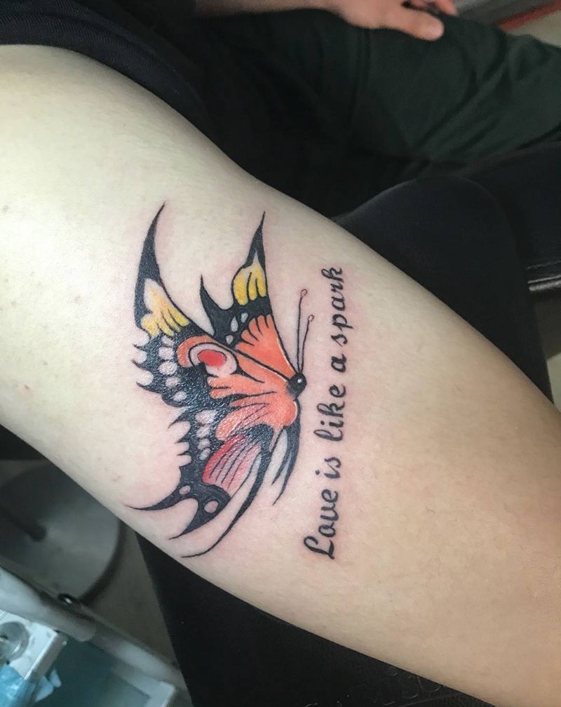 当前位置: 首页 >山东省东营市纹身店-铭源刺青·纹绣 TATTOO纹身图案>大臂蝴蝶英文纹身图片_成品手臂传统国画习俗清新动物原创纹身图案