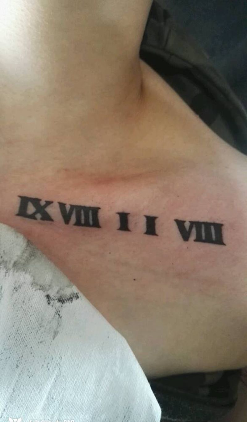 锁骨罗马数字纹身图片_颈部欧美写实字符成品纹身图案