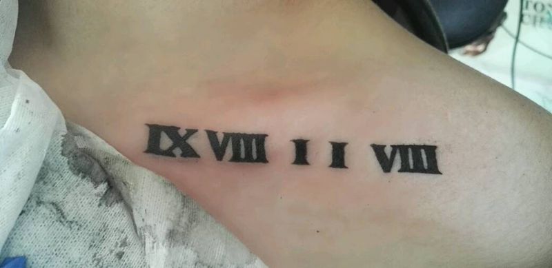 当前位置: 首页 >山东省东营市纹身店-铭源刺青·纹绣 TATTOO纹身图案>锁骨罗马数字纹身图片_颈部欧美写实字符成品纹身图案