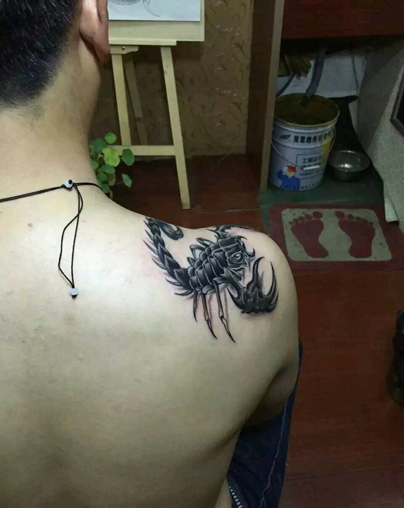 蝎子纹身图片_肩部写实动物成品纹身图案
