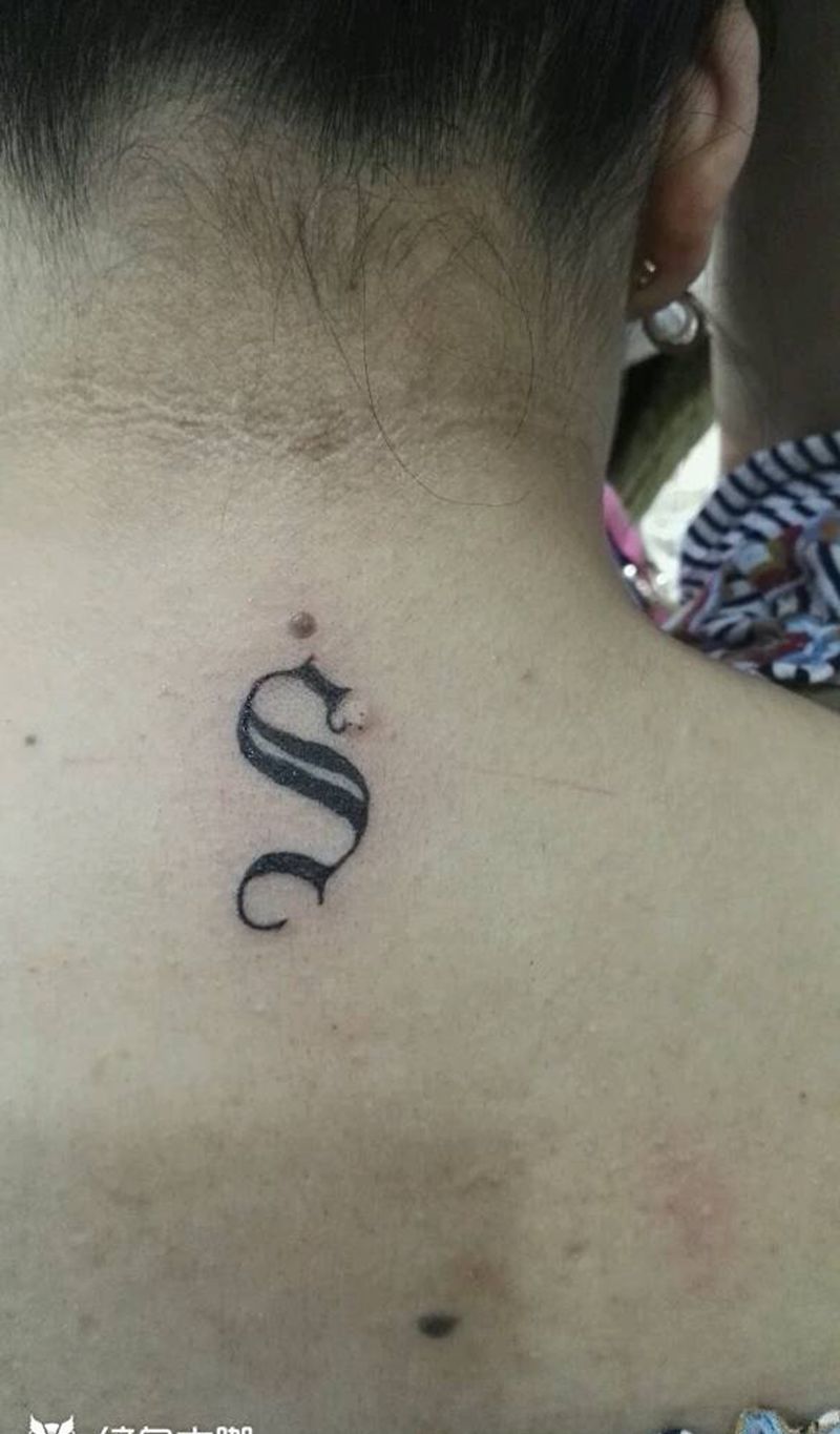 大椎字符纹身图片_背部欧美字符原创成品纹身图案