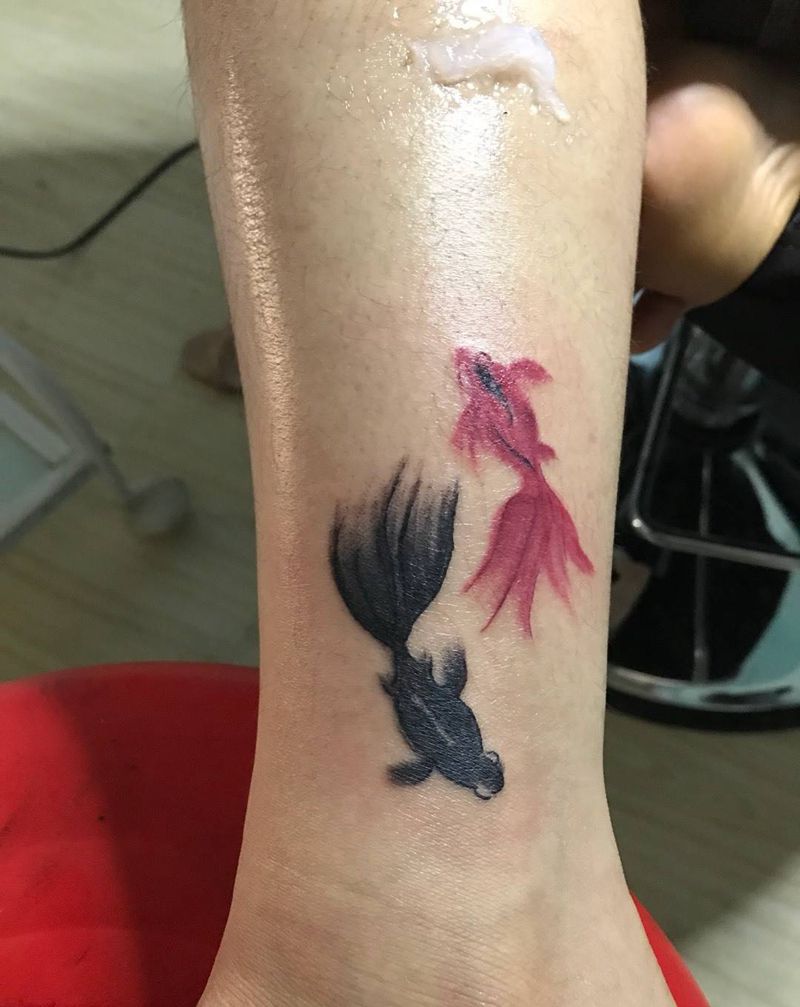 两条小鱼纹身图片_成品腿部习俗写实国画清新传统动物原创纹身图案