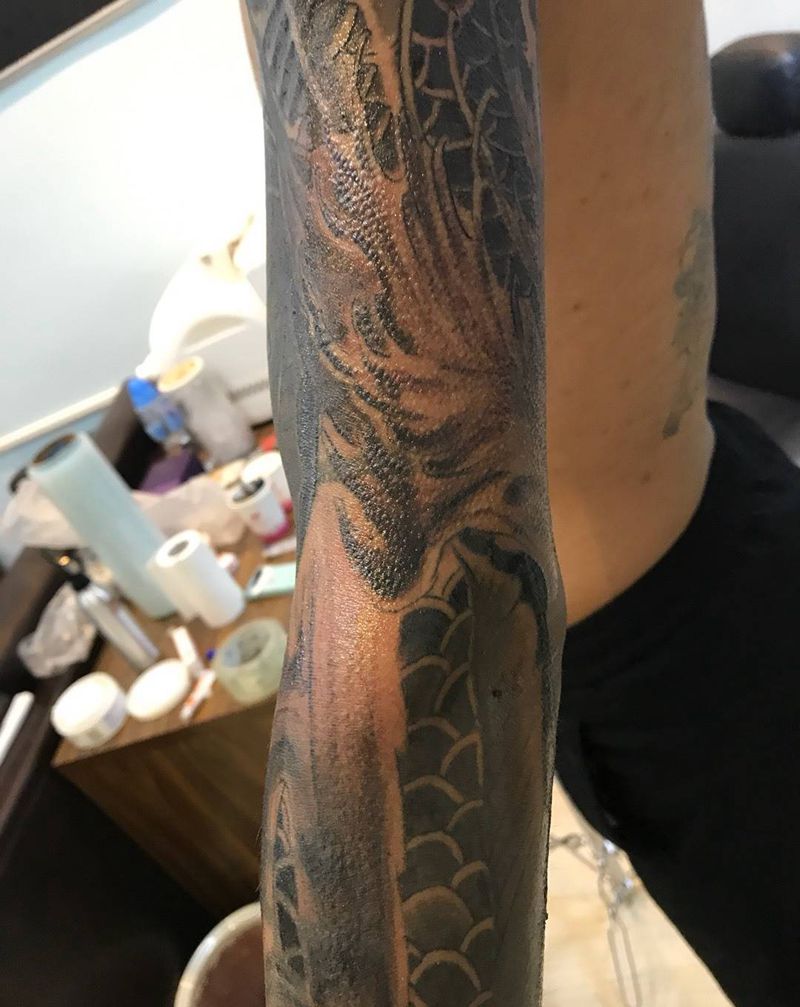 当前位置: 首页 >山东省东营市纹身店-铭源刺青·纹绣 TATTOO纹身图案>花臂遮盖纹身图片_成品手臂传统国画动物原创纹身图案
