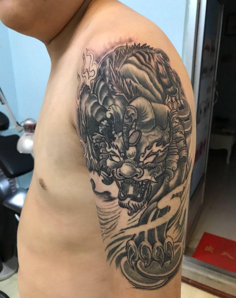 当前位置: 首页 >山东省东营市纹身店-铭源刺青·纹绣 TATTOO纹身图案>大臂貔貅遮盖纹身图片_成品手臂传统习俗鬼神动物纹身图案