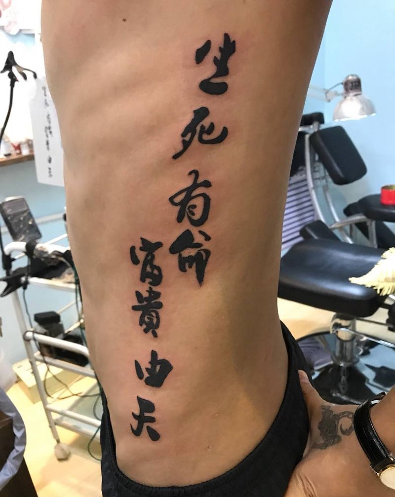 侧肋 富贵由天纹身图片_成品腰部腹部传统习俗字符纹身图案