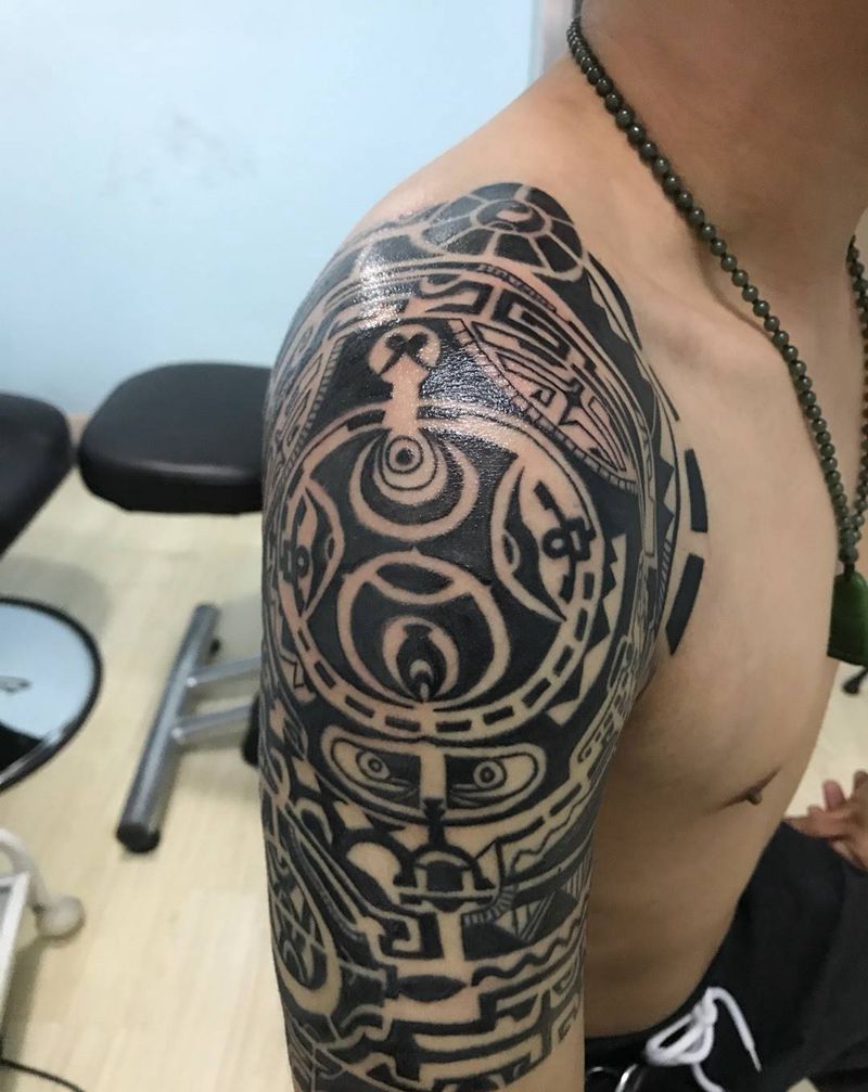 当前位置: 首页 >山东省东营市纹身店-铭源刺青·纹绣 TATTOO纹身图案>大臂图腾纹身图片_成品手臂肩部欧美写实图腾几何纹身图案
