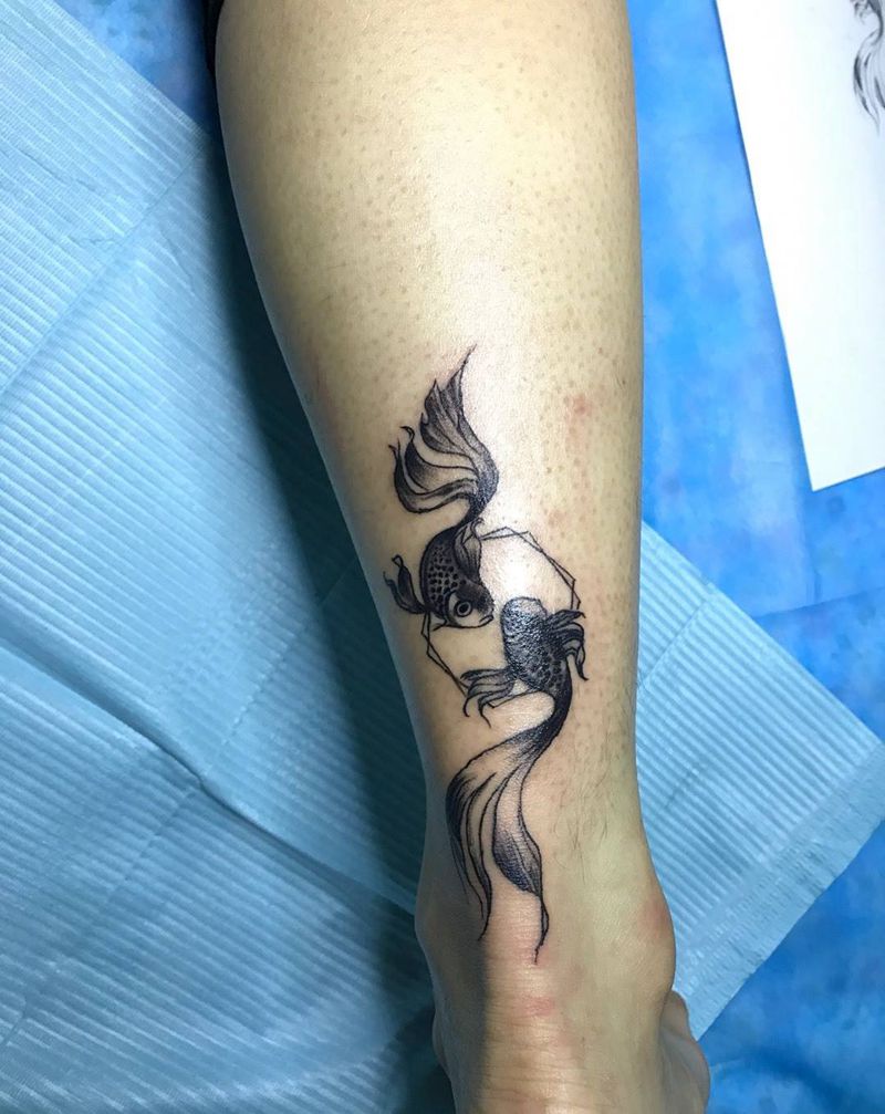 双鱼座纹身图片_成品腿部传统习俗清新几何动物纹身图案