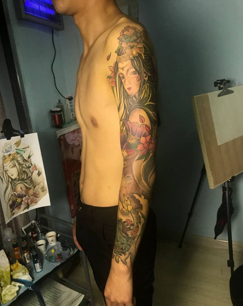 当前位置: 首页 >山东省东营市纹身店-铭源刺青·纹绣 TATTOO纹身图案>花旦.般若花臂纹身图片_手臂新传统纹身图案