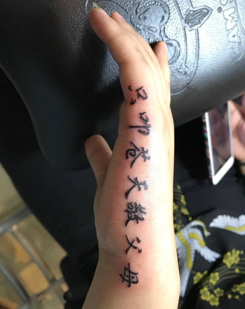 当前位置: 首页 >山东省东营市纹身店-铭源刺青·纹绣 TATTOO纹身图案>手部汉字纹身图片_成品手部传统习俗国画写实清新字符原创纹身图案