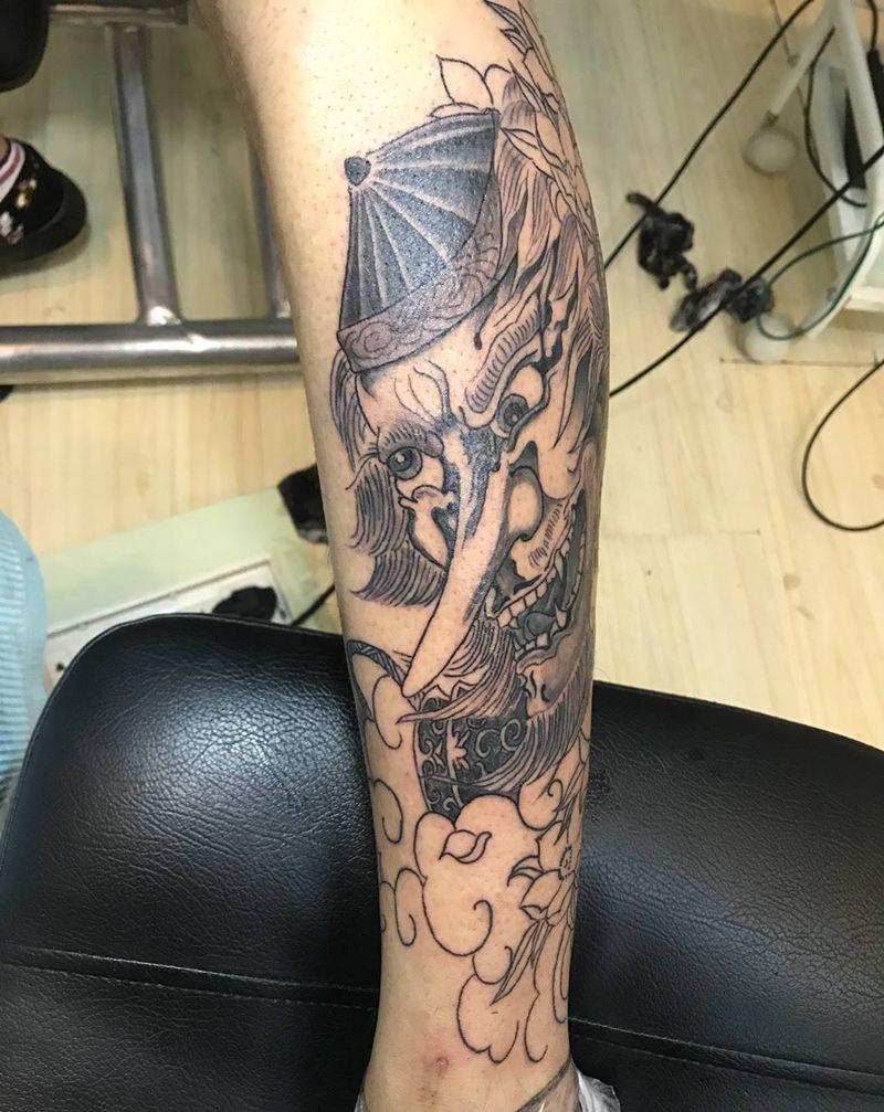 当前位置: 首页 >山东省东营市纹身店-铭源刺青·纹绣 TATTOO纹身图案>小腿大天狗纹身图片_成品腿部传统习俗鬼神宗教纹身图案