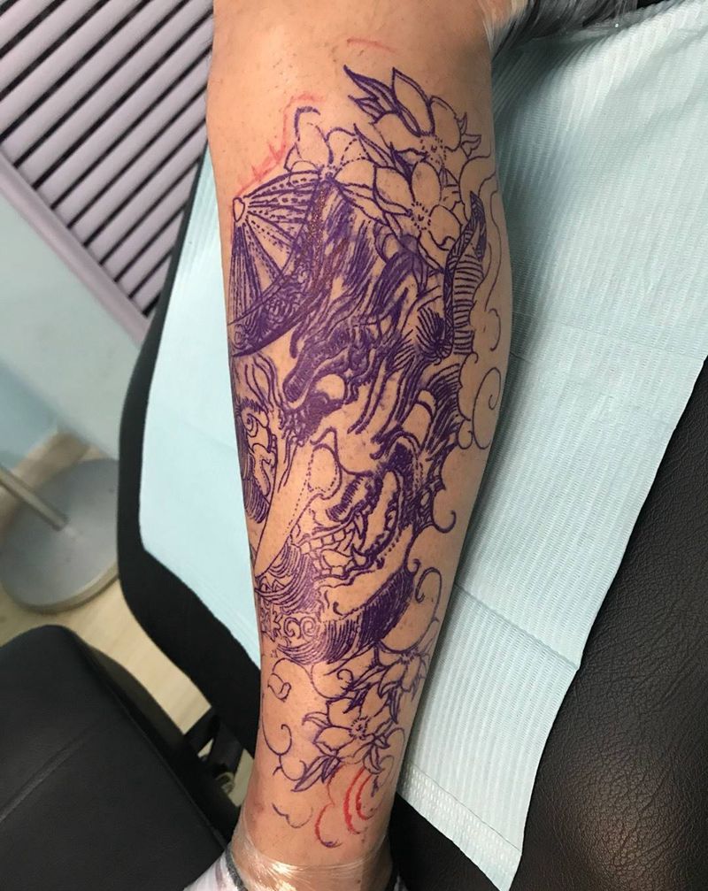 • T网红王老大花腿龙纹身图片_腿部新传统纹身图案