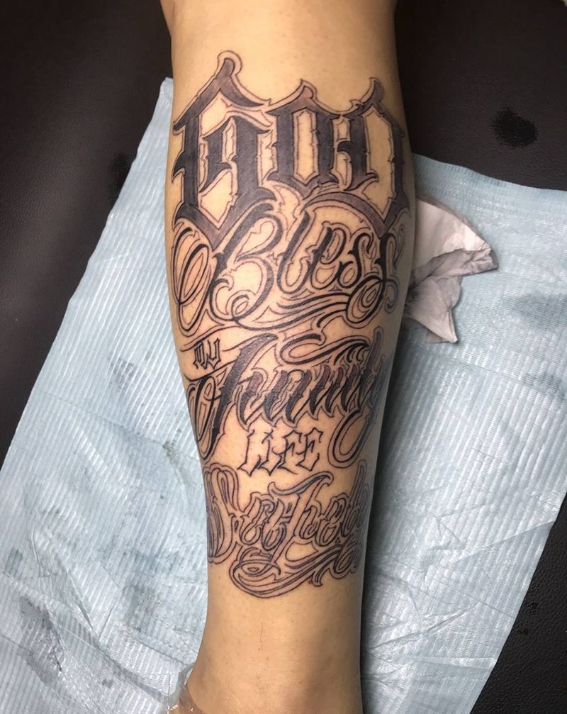 当前位置: 首页 >山东省东营市纹身店-铭源刺青·纹绣 TATTOO纹身图案>奇卡诺花体(未完成)纹身图片_成品腿部欧美字符纹身图案