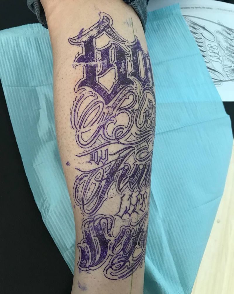 当前位置: 首页 >山东省东营市纹身店-铭源刺青·纹绣 TATTOO纹身图案>奇卡诺花体(未完成)纹身图片_成品腿部欧美字符纹身图案