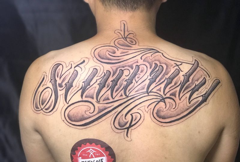 当前位置: 首页 >山东省东营市纹身店-铭源刺青·纹绣 TATTOO纹身图案>真挚—其卡诺字体纹身图片_背部花体字纹身图案