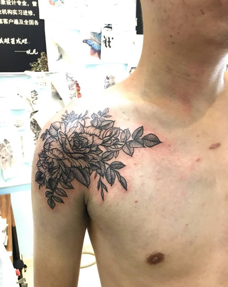 • 女性大花胸纹身_43张霸气漂亮的女性大花胸纹身图案作品