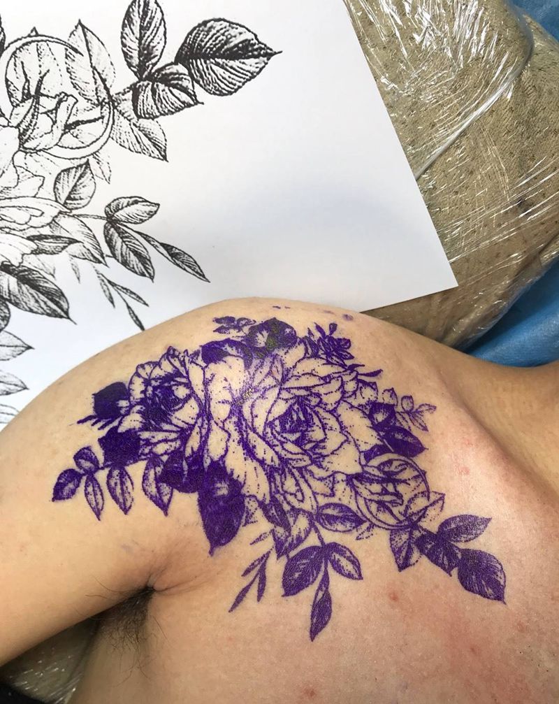 • 女性大花胸纹身_43张霸气漂亮的女性大花胸纹身图案作品