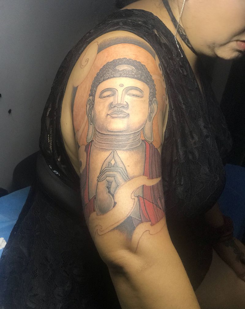当前位置: 首页 >山东省东营市纹身店-铭源刺青·纹绣 TATTOO纹身图案>佛纹身图片_手臂新传统纹身图案