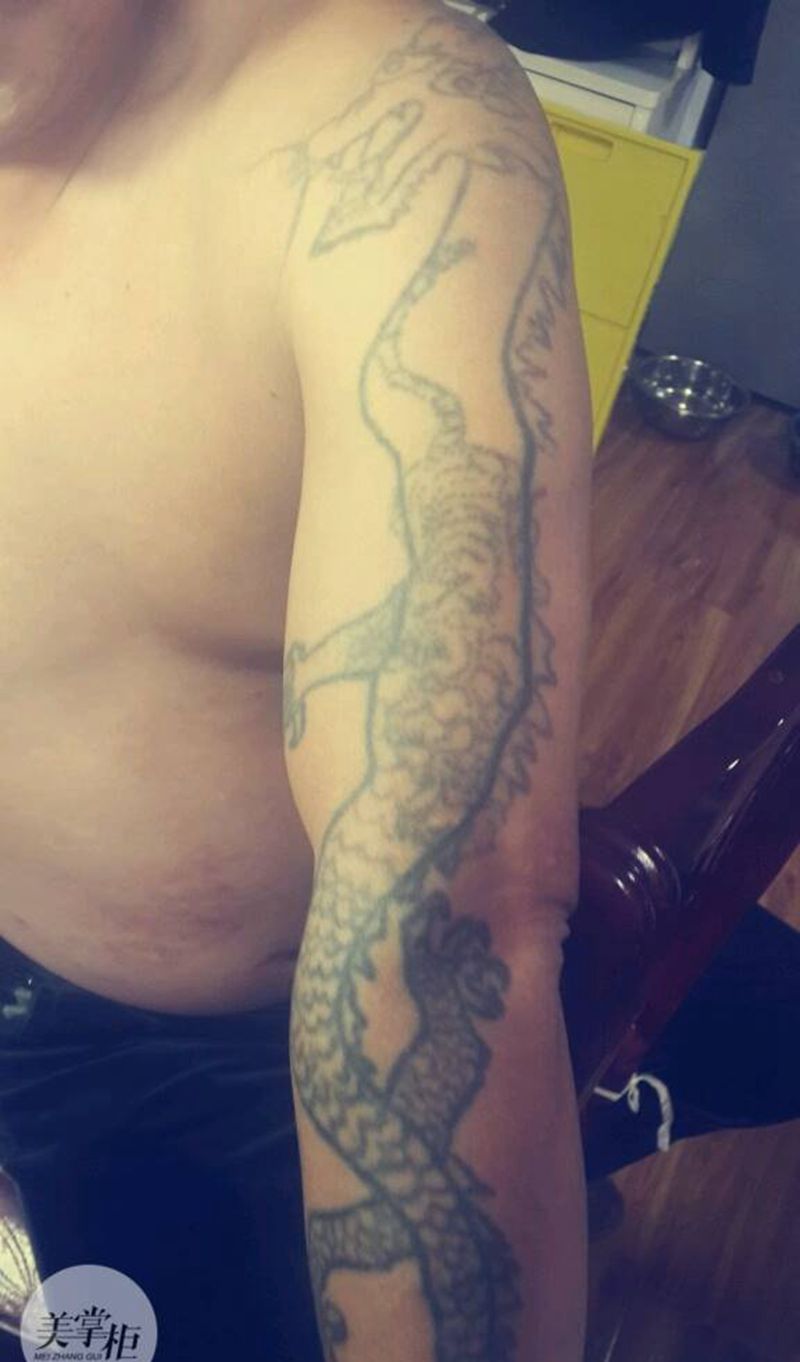 • T网红王老大花腿龙纹身图片_腿部新传统纹身图案