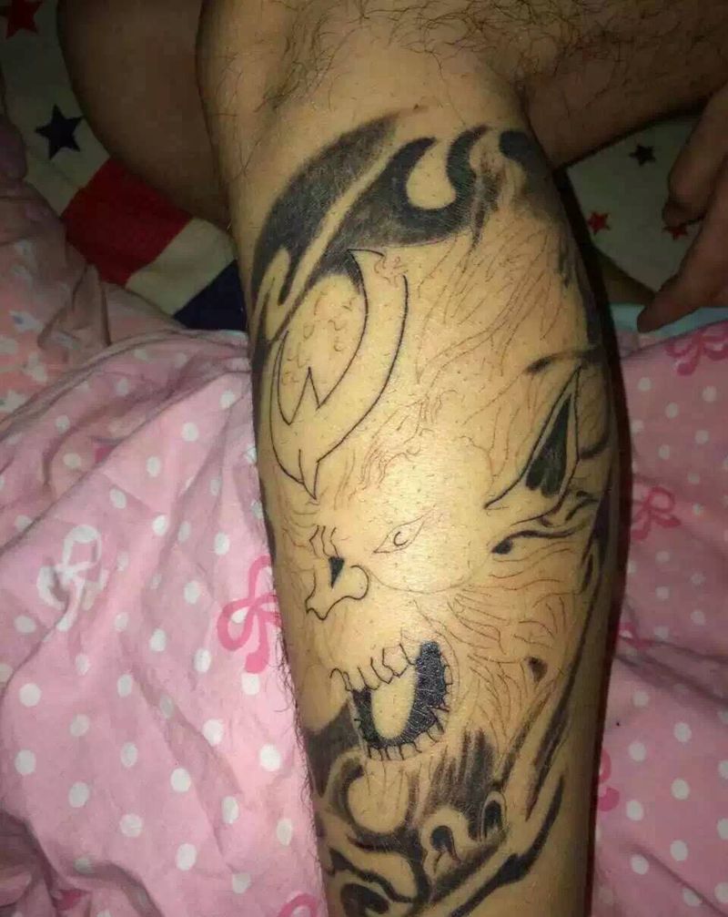 • T网红王老大花腿龙纹身图片_腿部新传统纹身图案
