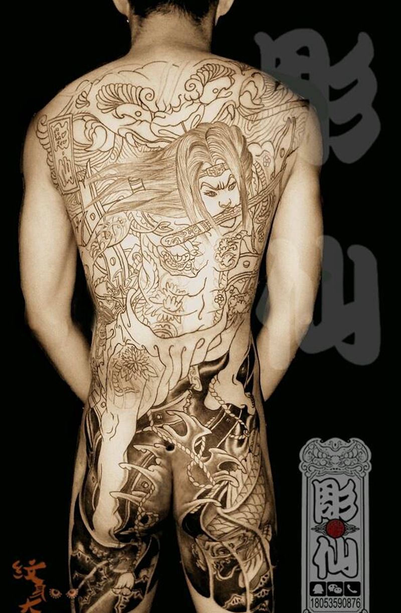 黑灰满背纹身图案