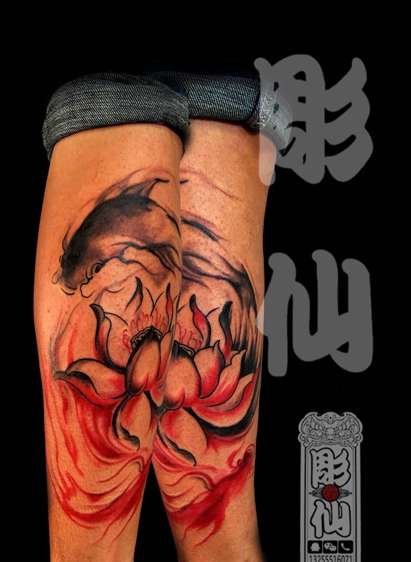 • T网红王老大花腿龙纹身图片_腿部新传统纹身图案