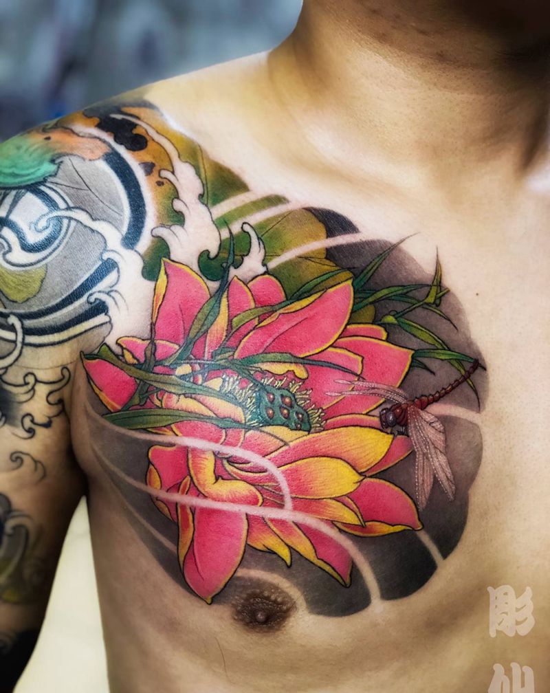 《濯清涟》纹身图片_胸部新传统纹身图案