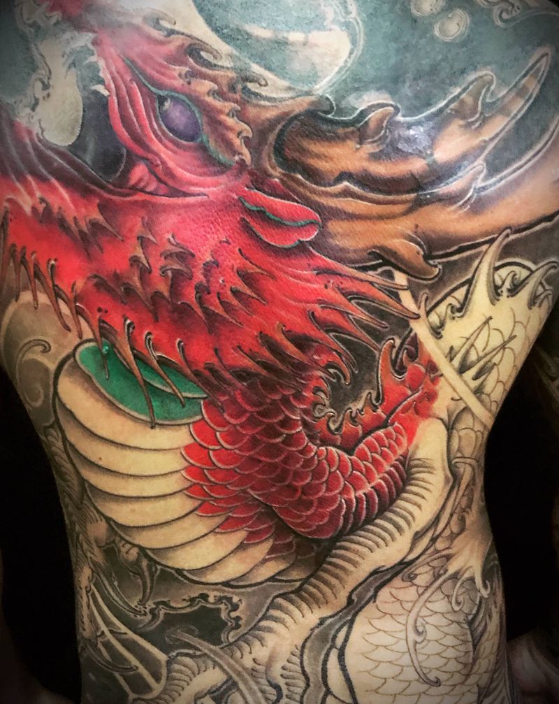 黑灰满背纹身图案