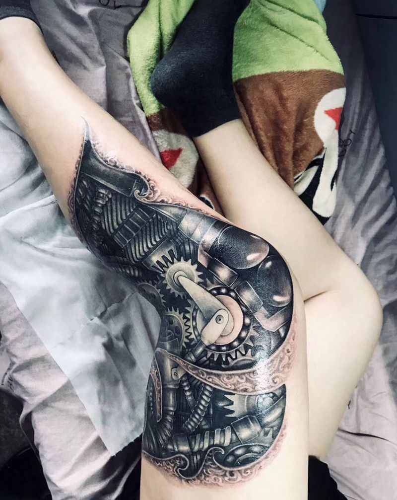 当前位置: 首页 >山东省烟台市纹身店-墨华刺青纹身图案>机械腿纹身图片_腿部欧美写实机械纹身图案