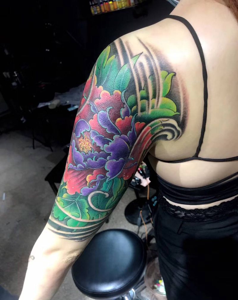 当前位置: 首页 >山东省烟台市纹身店-墨华刺青纹身图案>大臂牡丹纹身图片_手臂新传统牡丹遮盖纹身图案