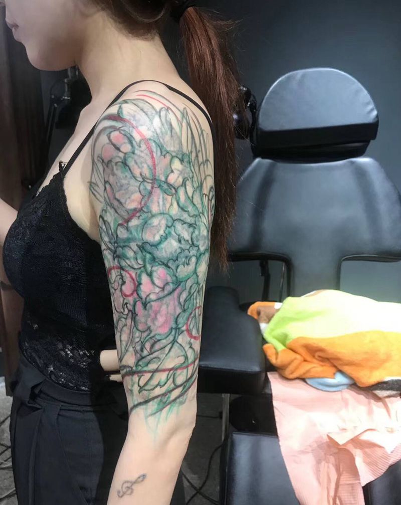 当前位置: 首页 >山东省烟台市纹身店-墨华刺青纹身图案>大臂牡丹纹身图片_手臂新传统牡丹遮盖纹身图案