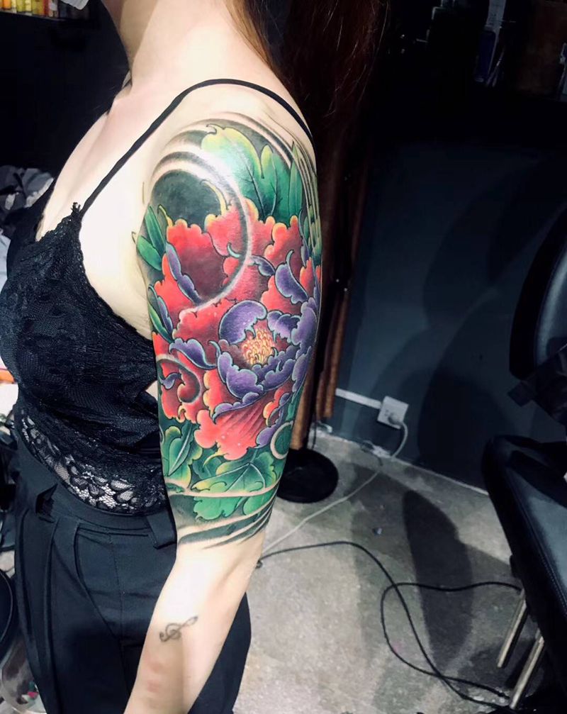 当前位置: 首页 >山东省烟台市纹身店-墨华刺青纹身图案>大臂牡丹纹身图片_手臂新传统牡丹遮盖纹身图案