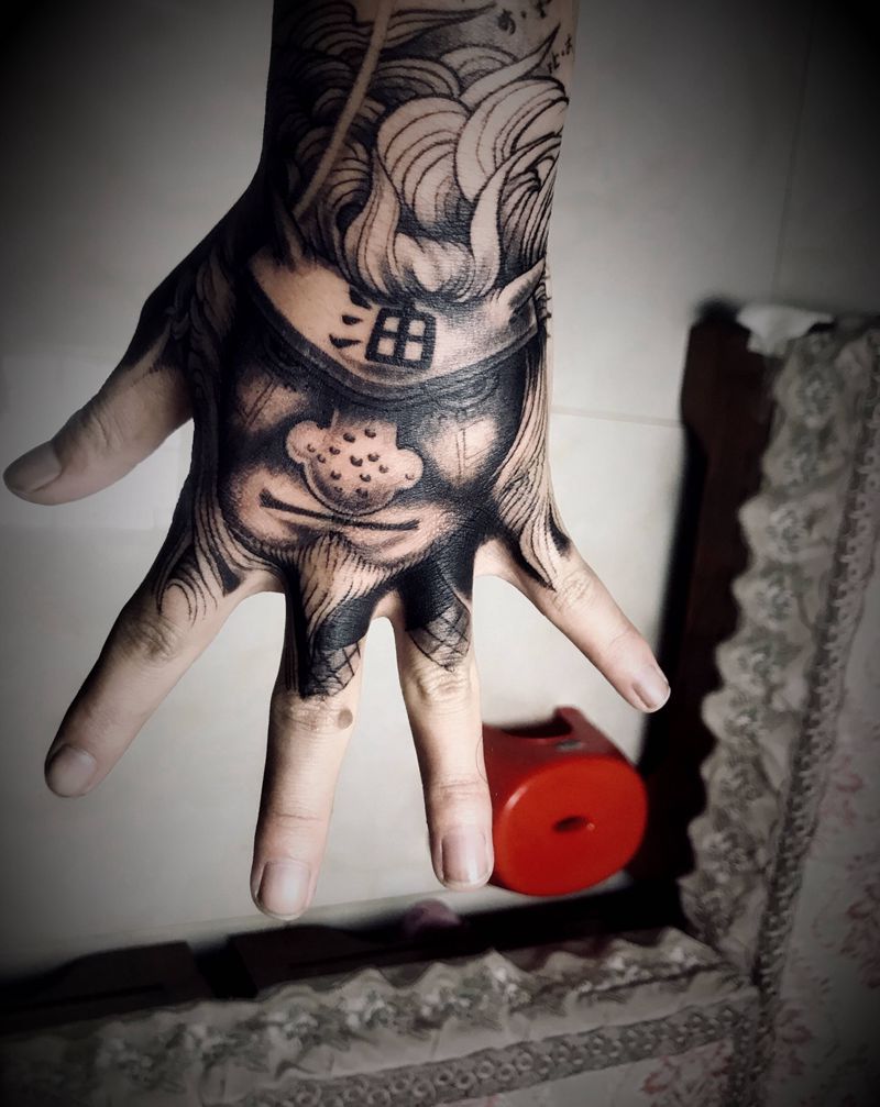 当前位置: 首页 >山东省烟台市纹身店-墨华刺青纹身图案>仙人自来也纹身图片_手部新传统纹身图案