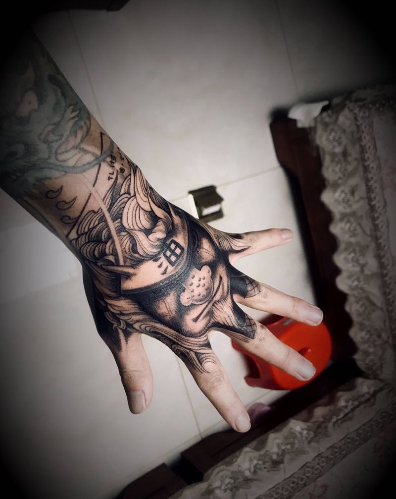 当前位置: 首页 >山东省烟台市纹身店-墨华刺青纹身图案>仙人自来也纹身图片_手部新传统纹身图案