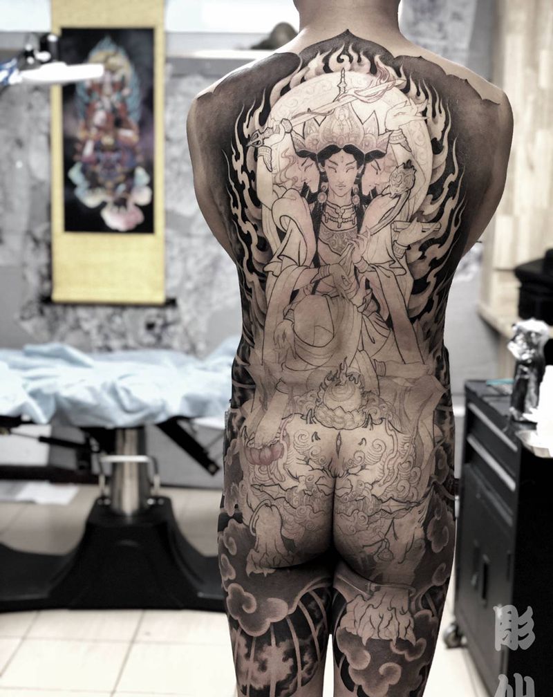 《文殊菩萨》纹身图片_背部新传统纹身图案