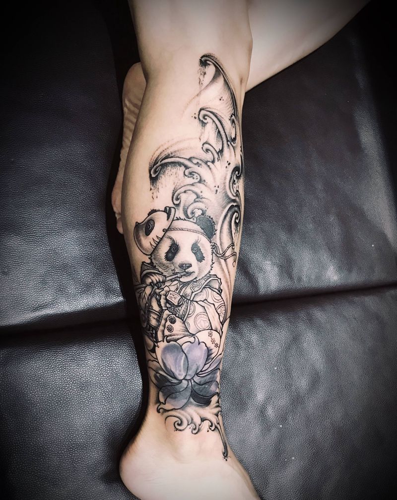 当前位置: 首页 >山东省烟台市纹身店-墨华刺青纹身图案>熊猫纹身图片_腿部新传统熊猫荷花纹身图案