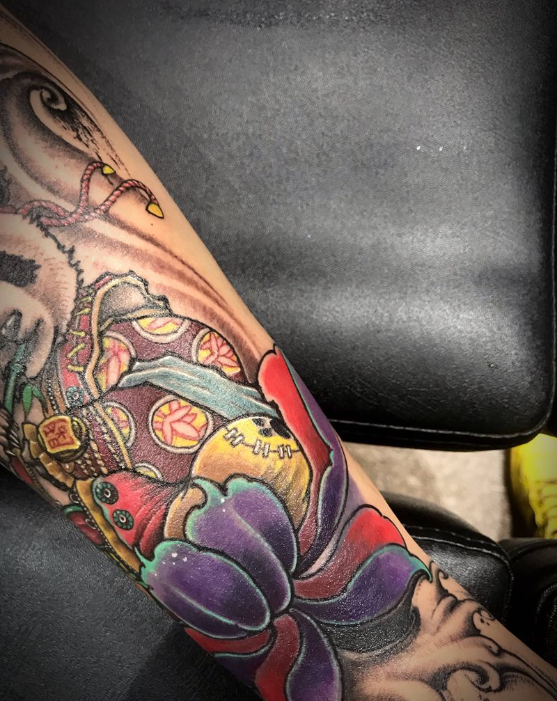 • T网红王老大花腿龙纹身图片_腿部新传统纹身图案
