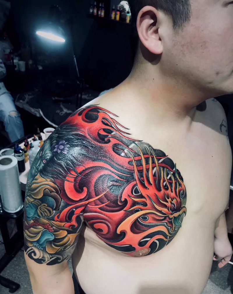 • 纹身吧推荐的披肩图腾半胛纹身图案作品展示