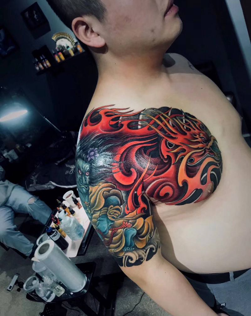 当前位置: 首页 >山东省烟台市纹身店-墨华刺青纹身图案>修改明王纹身图片_肩部新传统不动明王重彩火凤凰纹身图案