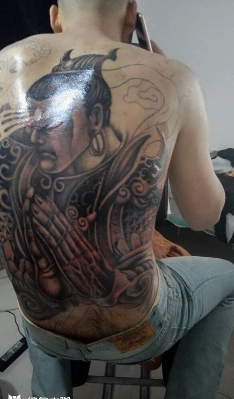 满背二郎神修改未完成纹身图片