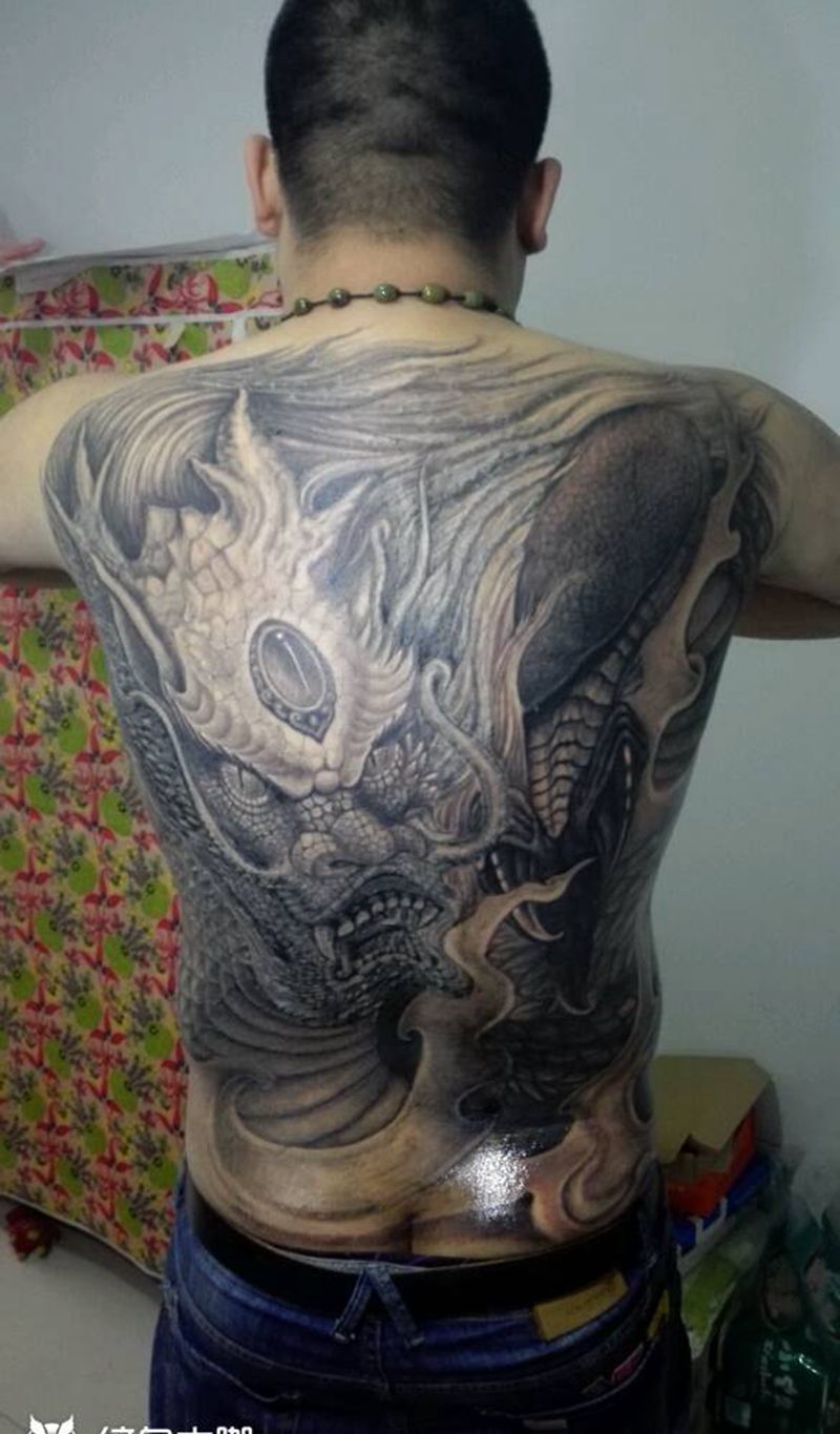 • T云龙九郎纹身图片_背部老传统云龙九郎纹身图案
