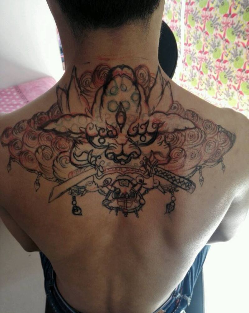 • 黑灰满背纹身图案